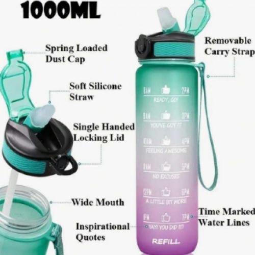 【اقتباسات تحفيزية وعلامات زمن】- قارورة مع اقتباسات ملهمة فريدة وعلامات زمنية، زجاجة المياه هذه رائعة لقياس استهلاكك اليومي من الماء، لتذكيرك بالبقاء رطبًا وشرب كمية كافية من الماء طوال اليوم. لا غنى عنه لأي أهداف لياقة بدنية بما في ذلك فقدان الوزن والتحكم في الشهية والصحة العامة.【تصميم عملي】- تم تصميم الغطاء العلوي القابل للطي بقفل آمن، مما يجعله مقاومًا للغبار والتسريب. ببساطة افتحها بيد واحدة بالضغط على الزر. تتميز بشفاطة سيليكون تسمح لك بالاستمتاع بالشرب المقاوم للانسكاب. مع حزام حمل قوي وغطاء بلوري عاكس خاص يتفاعل بشكل فريد مع بيئتك. الفوهة واسعة بما يكفي لتناسب مكعبات الثلج، كما أنها سهلة التنظيف.【خالية من البيسفينول ايه والسموم】- مصنوعة من بلاستيك تريتان كو-بوليستر عالي الجودة، زجاجة المياه هذه خالية من البيسفينول ايه والسموم بنسبة 100%، خالية من الروائح وصحية لشرب الماء يوميًا. مثالية للمشي لمسافات طويلة أو ركوب الدراجات أو التخييم أو الجري أو اليوغا أو أي رياضة أخرى في المنزل أو صالة الألعاب الرياضية أو المدرسة أو في المكتب.【اختيار مثالي كهدية】- تأتي بسعة كبيرة 1 لتر / 32 اونصة ومجموعة متنوعة من الألوان النابضة بالحياة وخيارات الأنماط اللطيفة، هذه الزجاجة الممتازة هي أفضل فكرة هدية لنفسك وأصدقائك وأفراد الأسرة وزملاء العمل والنساء والرجال والبنات والأولاد الذين يستمتعون بأسلوب حياة صحي.【نصائح الاستخدام】- لا تسقطها؛ غير آمنة للغسل في غسالة الأطباق؛ نظفها بصودا الخبز والخل.